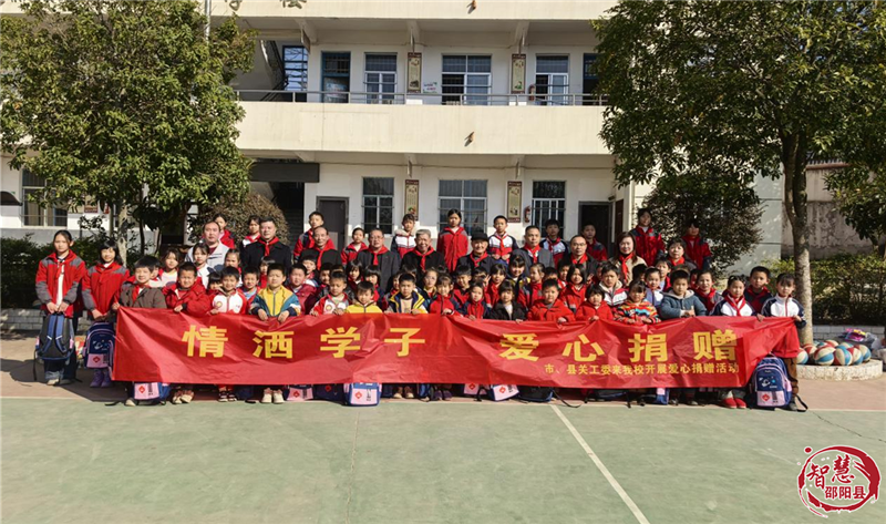 1月13日,市关工委主任李晓红带队来我县河伯乡石塘学校开展“让大山里的孩子背上新书包”爱心公益助学活动,为该校65名学生捐赠书包、彩笔等学习用品,以及篮球、羽毛球、跳绳等体育器材,同时也给学校的老师们送去了一些书籍。县关工委相关负责人参加。