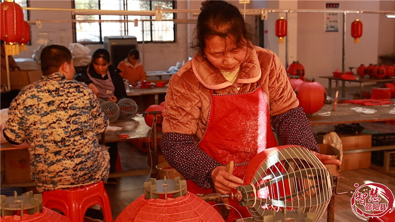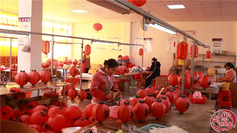 春节的脚步日渐临近,邵阳县易地扶贫搬迁安置小区梅溪嘉园内,鑫达灯笼厂的生产车间暖意融融、一派繁忙。工人们穿梭于工作台间,扎制骨架、剪裁裱纸、装饰点缀、指尖翻飞间,一盏承载着团圆期盼的红灯笼渐次成形,赶制着即将送往千家万户的节庆祝福。