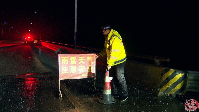 在塘渡口镇后田村路口、双江口大桥等重点风险点位,民警第一时间设置安全警示标识,同时通过警车扩音喊话,反复提醒过往驾驶员减速慢行、保持安全车距,谨慎通过易滑路段,从源头遏制交通事故发生。