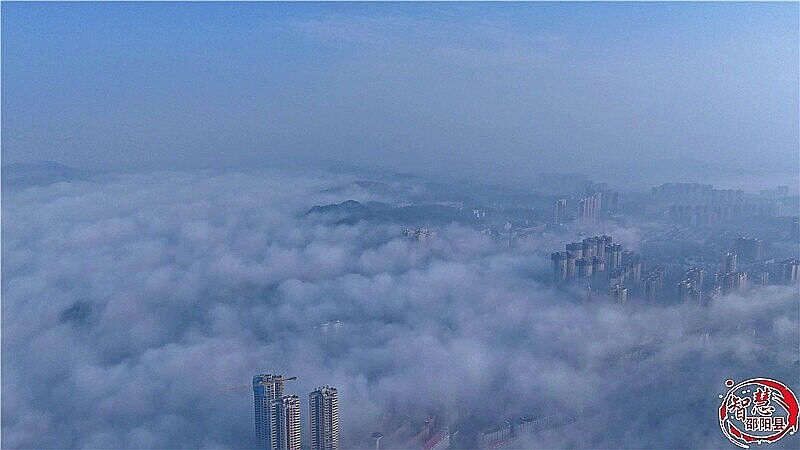 清晨时分,云雾自城郊山谷间缓缓升腾,逐渐向城区蔓延铺展。起初是轻薄的云絮如轻纱漫卷,随着气流涌动,渐渐凝聚成壮阔云海。