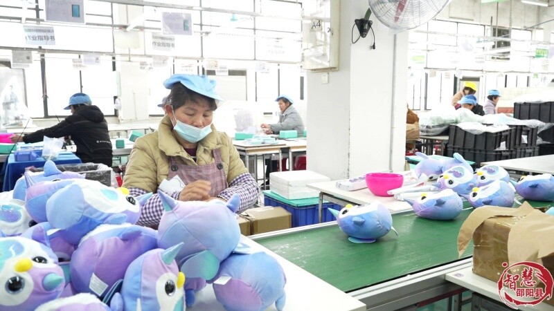 邵阳市华登塑胶制品有限公司主营塑胶、电子、毛绒等玩具产品,远销欧美、日本、非洲、南美等国家和地区。企业总投资4200万元,拥有200余台设备、12条自动化流水线,外发加工员工超5000余人,年产值可达3亿元。开工首日,员工全员到岗,正加紧组装发往欧洲、美国的订单产品。“我们装配车间今年的一个计划是1400万元的生意。今天开工第一天,员工到岗率是基本上到齐了,我们最主要生产的都是销往欧洲的产品。”装配车间主管夏美芳信心满满地说。