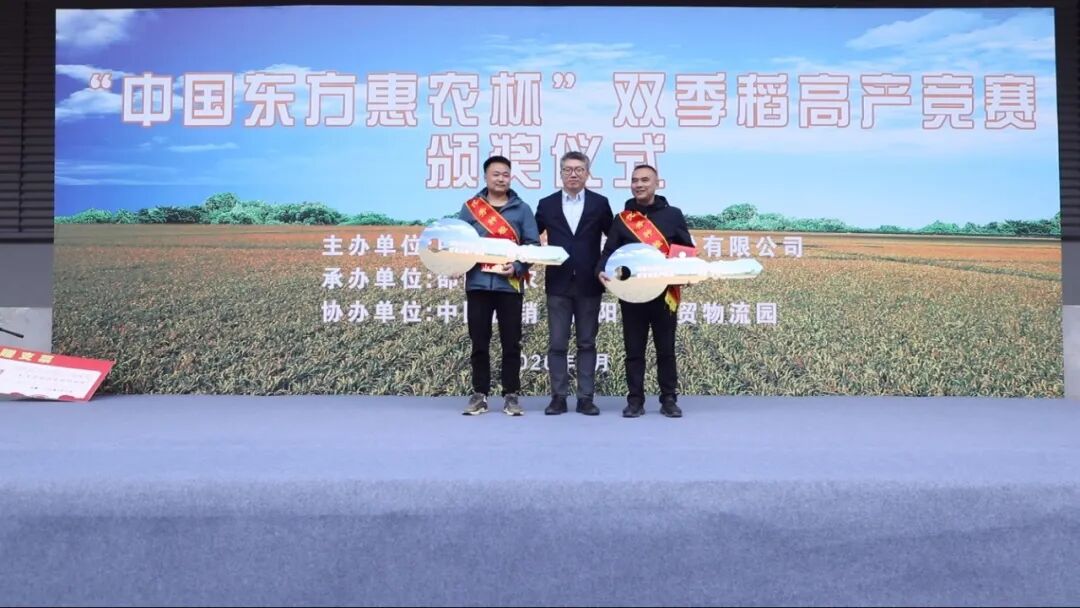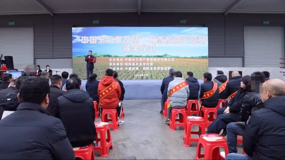 3月20日,邵阳县举行“中国东方惠农杯”双季稻高产竞赛颁奖仪式,为12名种粮大户奖励价值120万元的农用机械,助力春耕生产。