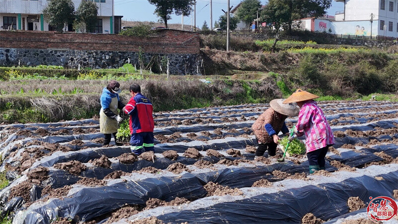 在塘渡口镇白羊铺村烟叶移栽现场, 30余名本地村民抢抓农时,有序开展烟苗移栽、除草、施肥等田间管护作业,现场一派繁忙有序的春耕景象。