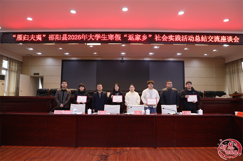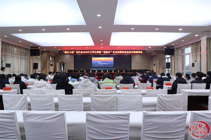 2月26日,“雁归夫夷”邵阳县2026年大学生寒假“返家乡”社会实践活动总结交流座谈会在县政府会议室召开。70余名来自全国各所高校的邵阳县籍大学生返乡大学生齐聚一堂,共话实践感悟,共绘家乡发展新蓝图。