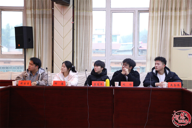 会上,县人才发展服务中心有关负责人宣介了我县人才政策,结合邵阳县新时代人才工作“18 条新政”及“1+7”人才政策体系,向返乡学子全面解读家乡引才、育才、用才、留才全链条举措,让返乡学子进一步了解家乡、扎根家乡。随后,大学生代表依次分享参与“返家乡”社会实践的经历与感悟,结合实践体验和专业所长为家乡发展建言献策,表达了学成返乡、建设家乡的强烈意愿。学子们畅谈在政务实践、志愿服务、乡村振兴等岗位上的收获与成长,分享了基层一线的实践见闻,提出了关于提升县域产业发展、优化基层治理、民生服务提升等方面的建议和意见,尽显新时代青年的责任与担当。