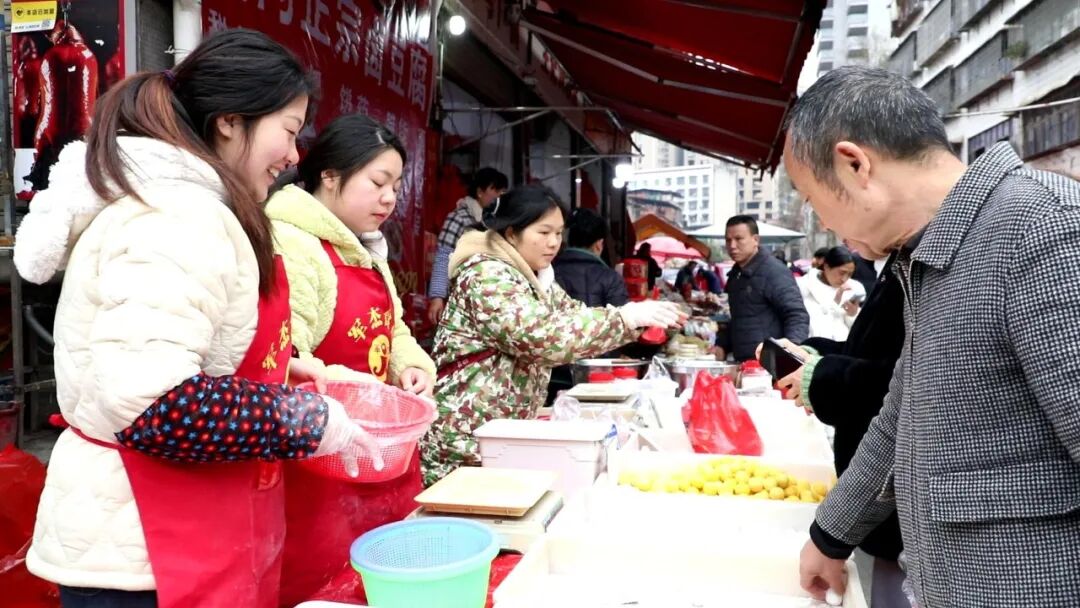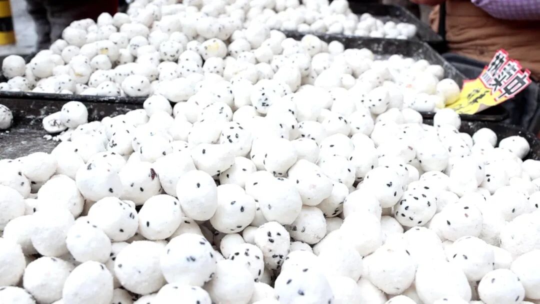 在塘渡口农贸市场,手工汤圆摊位前更是人头攒动。摊主们身着工作服,熟练地舀起黑芝麻、花生馅料,在糯米粉中反复滚动,一个个圆润饱满的汤圆很快成型。新鲜现做的手工汤圆香气四溢,吸引了很多市民驻足购买。
