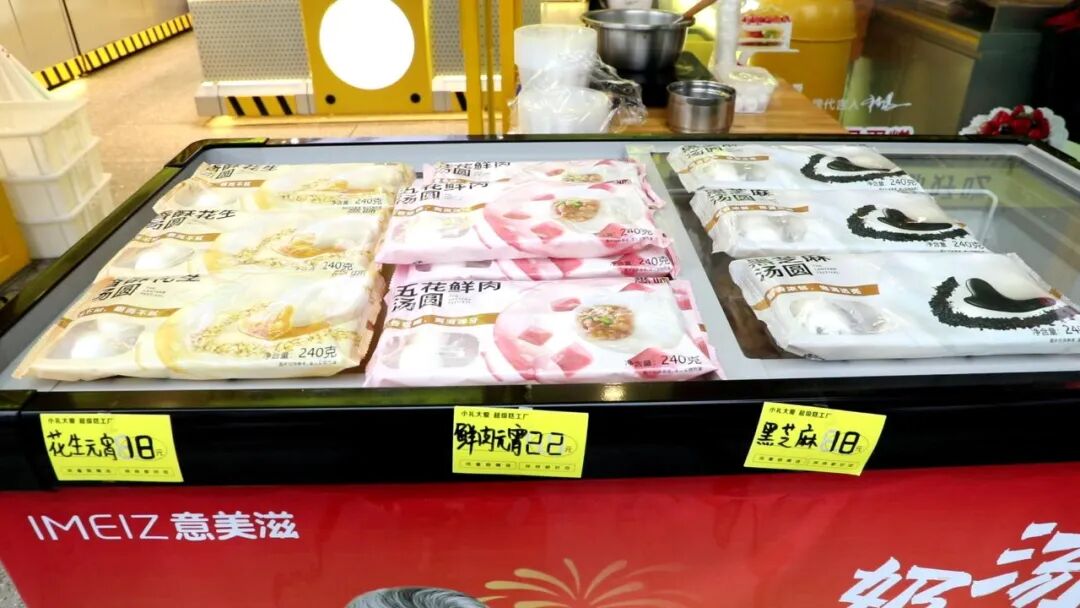 在新时代超市、凤凰城商场内,汤圆专柜格外醒目,各种品牌的速冻汤圆整齐码放,其中黑芝麻、花生两种经典口味占据了近七成货架,旁边还搭配了0蔗糖黑芝麻、大黄米花生等健康款,满足不同市民需求。不少市民早早来到专柜前选购,将一袋袋心仪的汤圆装进购物车。