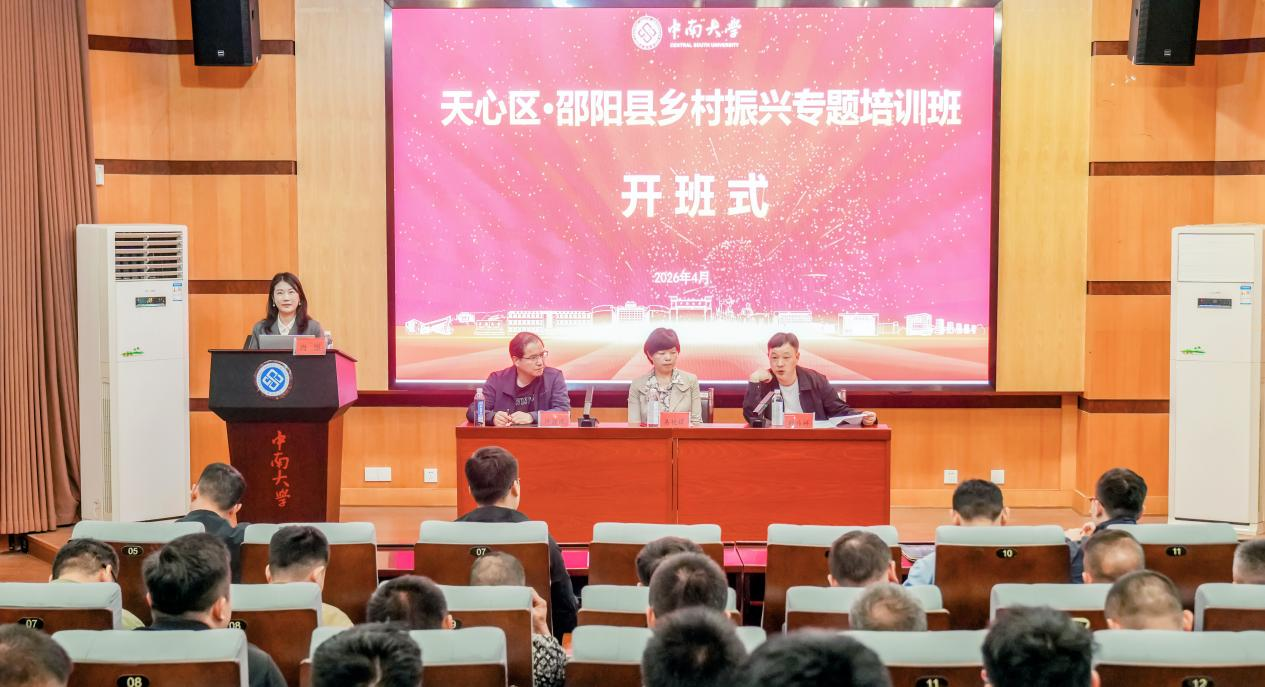 4月13日下午,天心区·邵阳县乡村振兴专题培训班在中南大学天心校区顺利开班。本次培训由天心区对口帮扶邵阳县工作组、县委组织部、县农业农村局共同举办,聚焦基层治理、产业发展、村集体经济等重点内容,为两地乡村振兴骨干力量集中“充电赋能”。邵阳县直相关单位、各乡镇(场)乡村振兴骨干、驻村第一书记及村党组织书记等近60人参训。