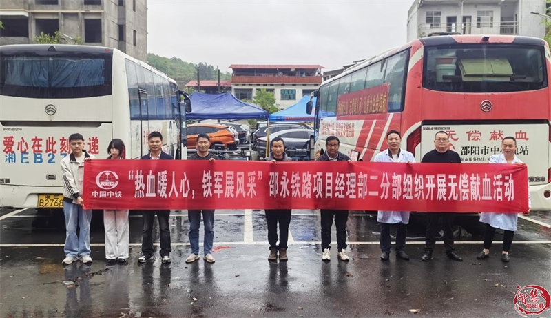 4月16日,中铁四局一公司邵永铁路项目经理部二分部开展“热血暖人心 铁军展风采”无偿献血公益活动。
