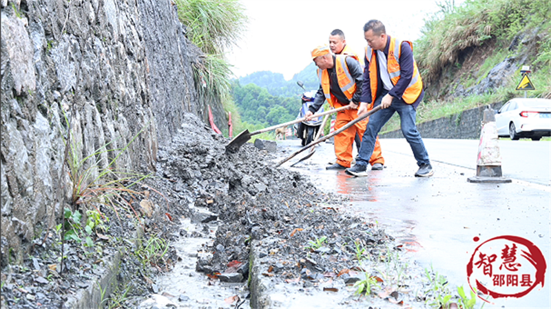 邵阳县公路养护中心干线养护部副部长李小舟:今天重点排查边坡稳定性、排水设施畅通情况,边沟是否有淤泥堵塞,裂缝等情况,确保汛期道路通行安全。