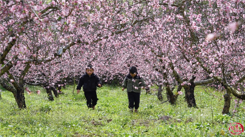 花海之中,游客们三五成群,漫步在蜿蜒的桃园小径上,沉醉在这片粉色浪漫里。大家驻足观赏桃花,纷纷拿出手机、相机定格繁花似锦的美景,打卡拍照。还有家长带着孩子穿梭林间,感受春日自然的美好,欢声笑语在花海间回荡。