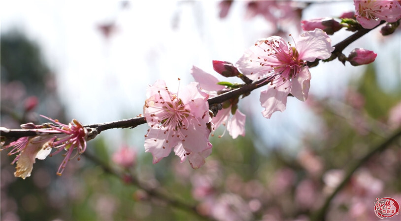 走进桃园,放眼望去,连片桃园如同粉色花海,深浅交错的桃花或含苞待放,或肆意盛开,粉红相间的花瓣娇嫩欲滴。花间,蜜蜂轻舞,微风轻拂,花枝摇曳,花香沁人心脾。错落有致的桃林顺着山势铺展,与周边的青山、农田交织,尽显乡村春日的静谧与灵动,一步一景皆是诗情画意。