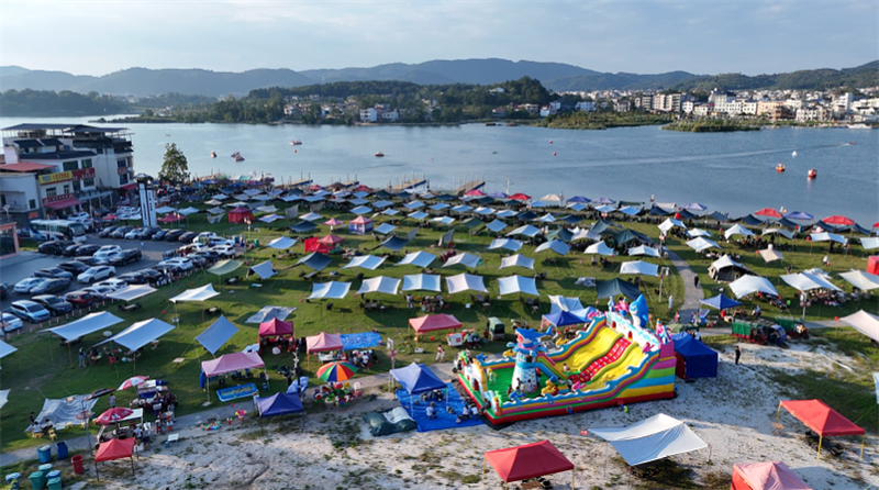 国庆中秋长假,不少市民选择远离城市喧嚣,奔赴自然之约。在邵阳县天子湖国家湿地公园,澄澈湖水与翠绿草坪相映成趣,独特的生态美景与丰富的露营体验,成为假期出游的热门之选,吸引了大批游客前来打卡。