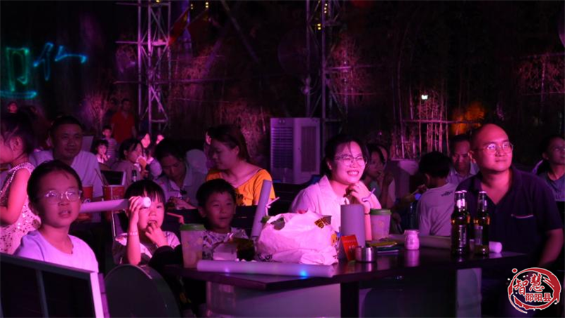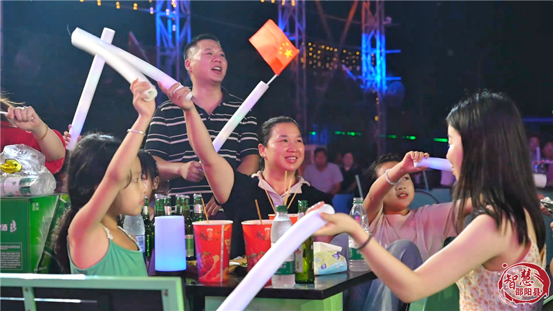 景区内的梦幻音乐城堡内,新推出的国潮演艺同样人气高涨。活动现场,劲爆舞曲点燃全场活力,柔美合唱传递温暖情怀,传统戏曲演绎更添文化韵味,多元曲风满足不同游客的听觉喜好。现场设置的抽奖环节更是惊喜不断,观众通过扫码参与游戏抽奖,幸运者可赢得啤酒。不少游客手持啤酒、品尝烧烤,与亲朋好友围坐在一起,边看节目边畅聊,沉浸式享受休闲时光。