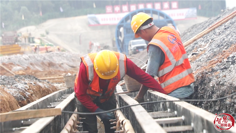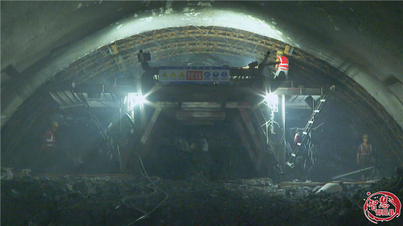 邵永铁路全长96公里,设计时速350公里,中铁四局邵永铁路项目部三分部承建的16.49公里段涵盖路基、桥梁、隧道等关键工程。在石木桥隧道内,工人们正在进行二衬钢筋绑扎,边墙凿毛,上台阶锁脚锚管打设,中、下台阶立架,二衬养护施工,现场一派热火朝天的施工景象。由于邵阳县地处丘陵地带,其中设计以隧道、桥梁为主,施工难度大,面对邵阳地区复杂的丘陵岩溶地质,建设团队创新应用智能化施工技术。