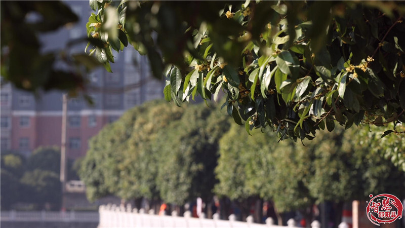 在邵新街、白虎街、河西街等主干道,道路两旁的桂树枝繁叶茂,细碎的花蕊点缀在绿叶间,微风拂过便送来阵阵清香,过往行人无不驻足深呼吸。