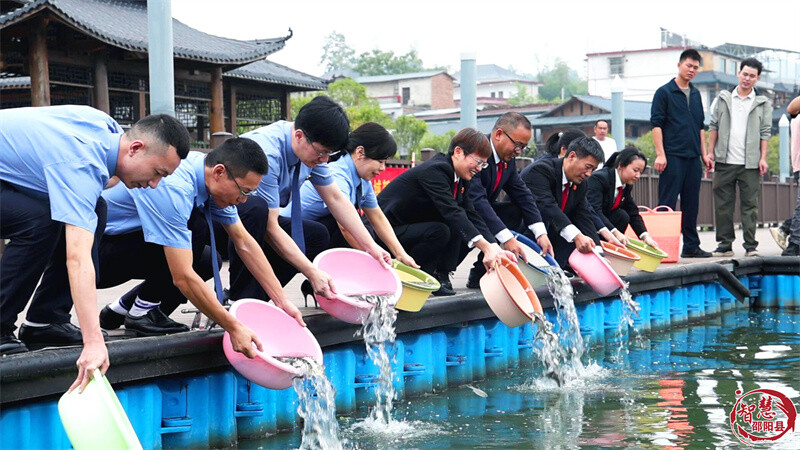 现场,检察、法院和渔政工作人员在当地群众的见证下,将35万尾活力满满的草、鲢、鳙等鱼苗顺次投入赧水河中,为该水域水生生物多样性保护注入新动能,有效发挥以身边事教育身边人警示教育作用。