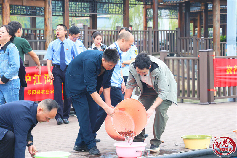 10月17日,邵阳县农业农村局联合县人民检察院、县人民法院、县森林公安局、县畜牧水产事务中心、县天子湖湿地公园管理处等部门,在天子湖国家湿地公园望江湖码头开展生态修复人工增殖放流活动,将35万尾活力满满的草、鲢、鳙等鱼苗顺次投入水中,为赧水流域水生生态系统注入“新活力”。