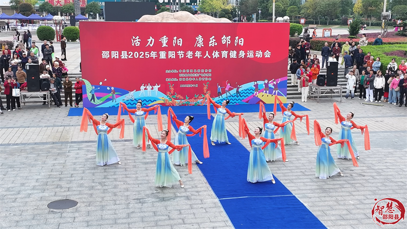 在“九九重阳节”来临之际,10月27日,由县委宣传部、县文化旅游广电体育局主办,邵阳县老年人体育协会承办的2025年重阳节老年人体育健身运动展演活动在振羽广场举行。来自全县的600余名老年运动员齐聚一堂,共同展示运动风采。县委常委、宣传部部长刘真林出席并宣布活动开始。