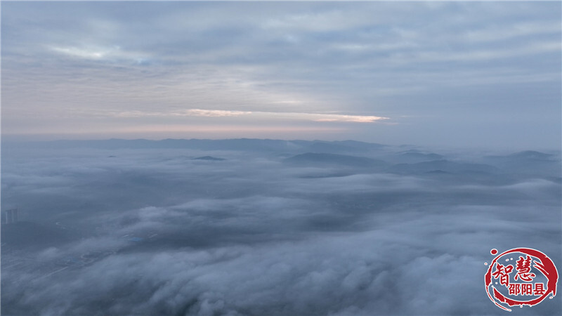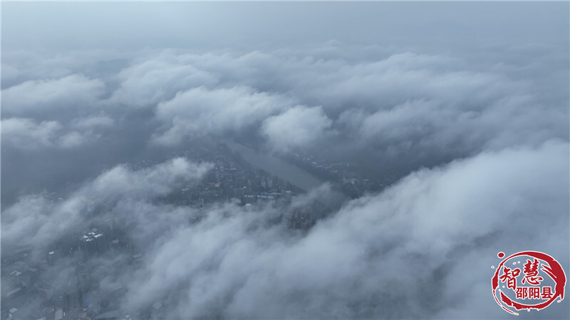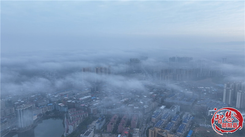 11月5日,邵阳县城区被晨雾笼罩,氤氲的晨雾似一层乳白色的轻纱,整个城市仿佛置身“雾海”之中,如梦如幻,好似仙境。高空俯瞰,晨雾覆盖住整个城市,高楼、山脉如坠云间,蔚为壮观。漫天雾气白如棉、轻如絮、动如烟,时隐时现,美不胜收,给城市增添了一份独特的神秘与浪漫。(刘健)