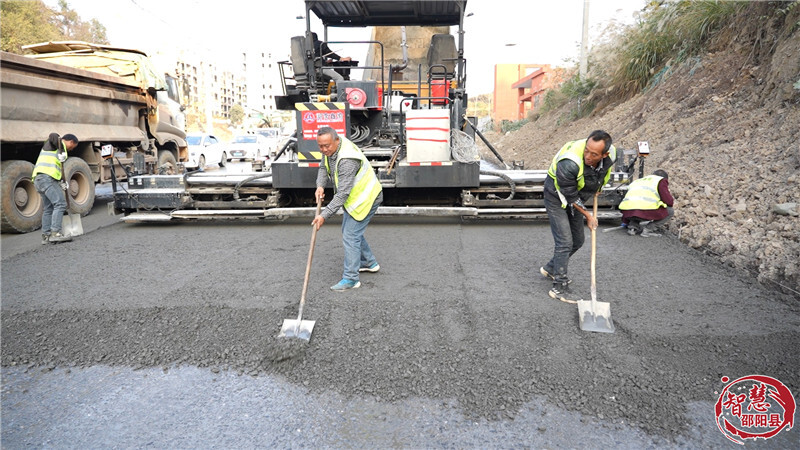 “天子湖大道二期工程作为邵阳县重点项目,已进入路面施工阶段,经过一个月紧张有序的抢工作业,路面水稳层面已完成70%,本周将开始沥青摊铺,目标是2026年1月中旬全线通车。”