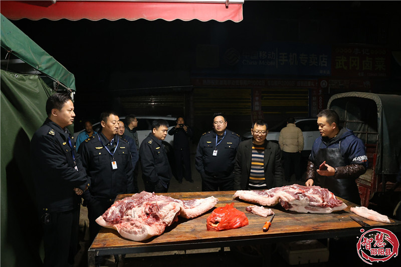 12月5日,邵阳县市场监督管理局联合县商务局对长阳铺镇农贸市场内的肉品专营店及摊位进行突击检查,从源头严把肉品质量关,筑牢乡村食品安全防线。
