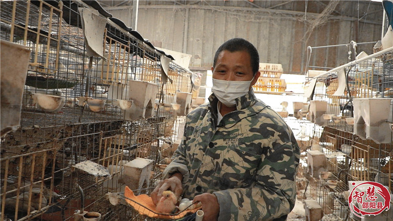 “(鸽子)现在出栏从蛋内孵化出来大概是在22天左右,现在温度低,春天温度高的话18天左右就可以出来,然后鸽种我们自己预留,要混合留着种,因为养殖必须要混合留种,如果不混合留种它的产品会差一些。”