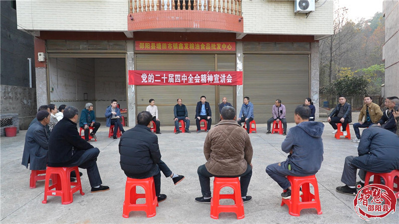 12 月 11 日,县委常委、组织部部长于四海在塘田市镇向荣村宣讲党的二十届四中全会精神。