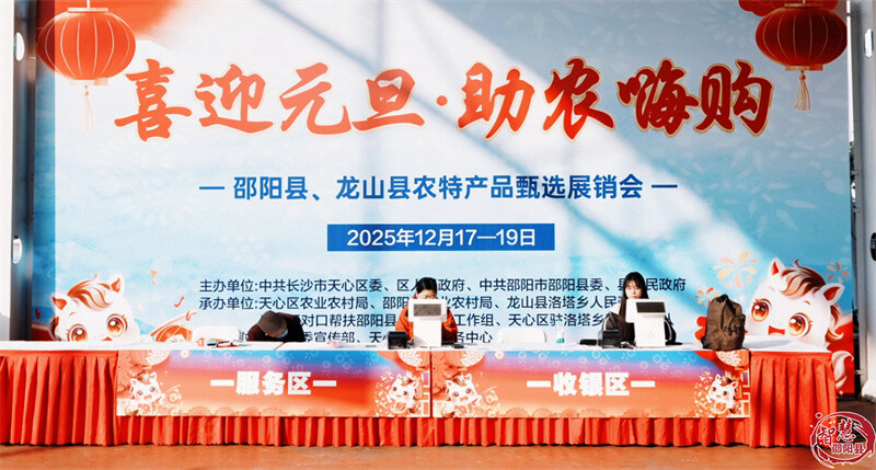 12月17日,“喜迎元旦·助农嗨购——邵阳县农特产品甄选展销会”在长沙市天心区人民政府篮球场开幕。活动首日便吸引超2000人次参观选购,销售额突破9万元。