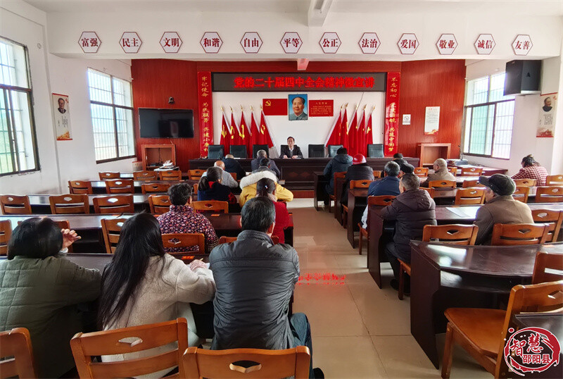 12月18日上午,县政协党组书记、主席唐军良在黄亭市镇和平村宣讲党的二十届四中全会精神。